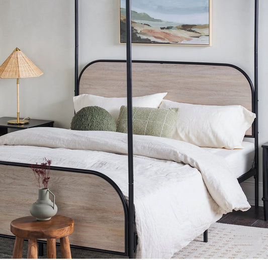 Industrial Bent Metal Queen Canopy Bed - Smoked Oak - Local Pick Up Only