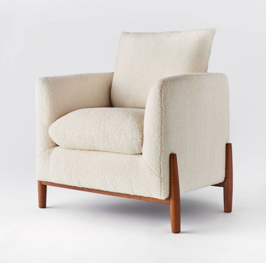 Elroy Accent Chair with Wooden Legs Cream Faux Shearling - Threshold designed with Studio McGee - Local Pickup Only
