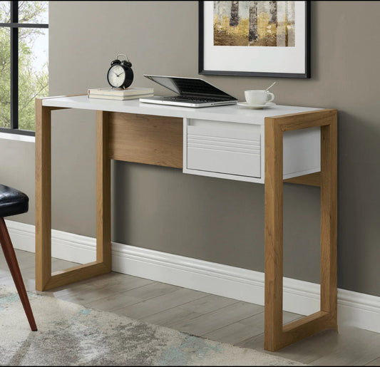 46" Fluted Drawer Writing Desk - English Oak/Solid White - Local Pick Up Only