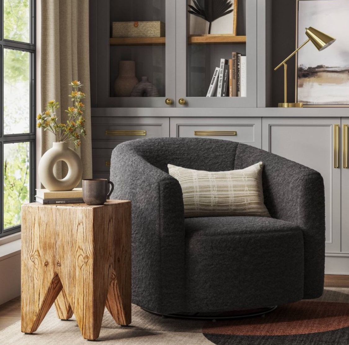 Large Aveline Swivel Chair Black Faux Shearling - Local Pickup Only