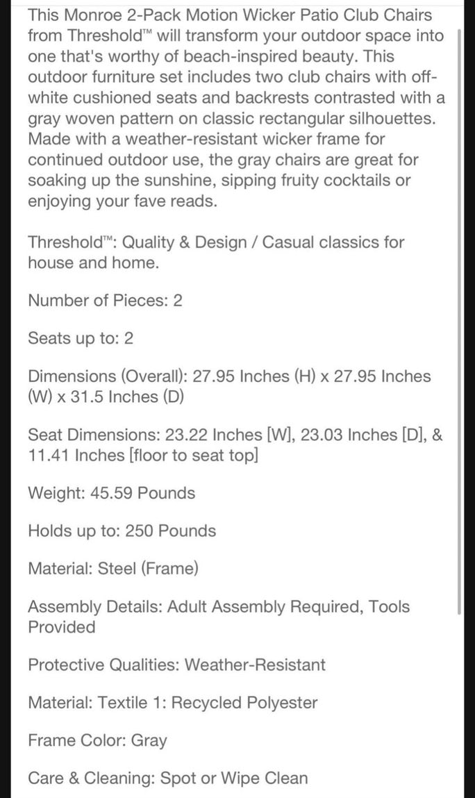 Monroe 2pk Motion Wicker Patio Club Chairs - Gray - Threshold - Local Pick Up Only